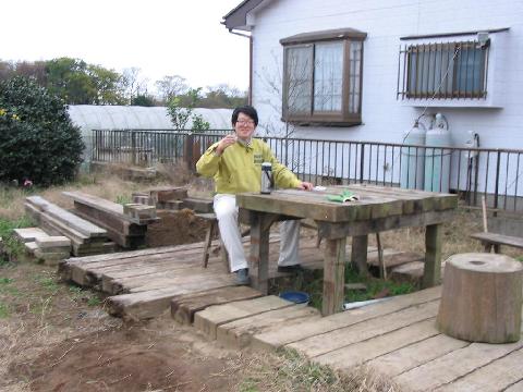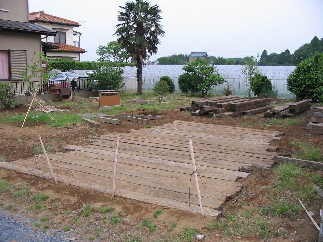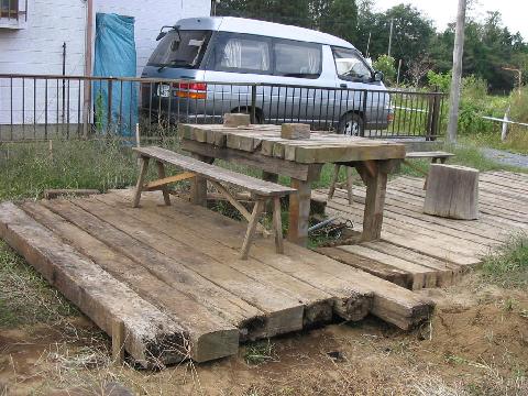2003/5 加藤さんがユンボで水平堀という高等技を使ってデッキを作ってくれました。