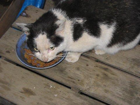 ↓まだなつかなかったころのブッチー。でもエサを食うやつ。