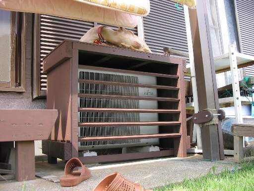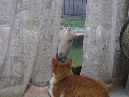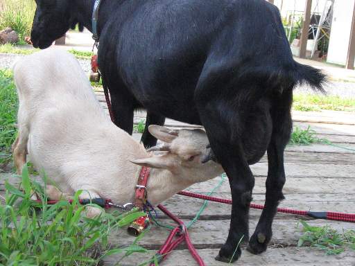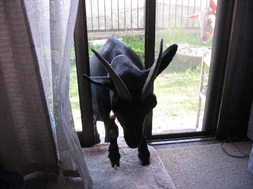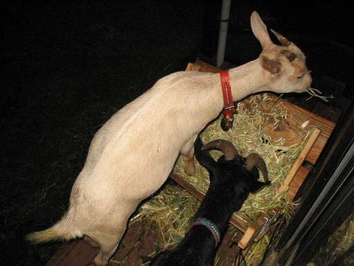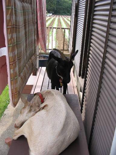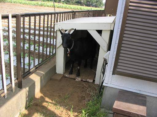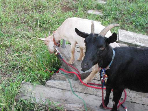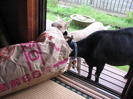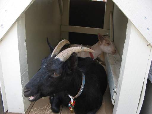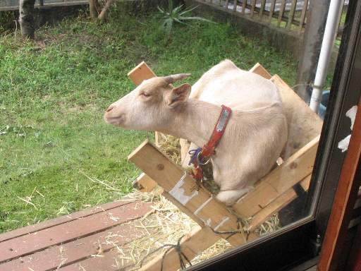 子ヤギが奥でくつろぎ、母ヤギは表で見張るの図。
