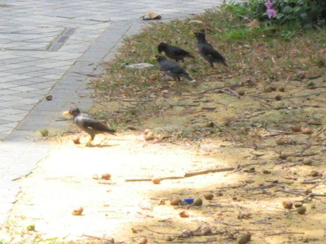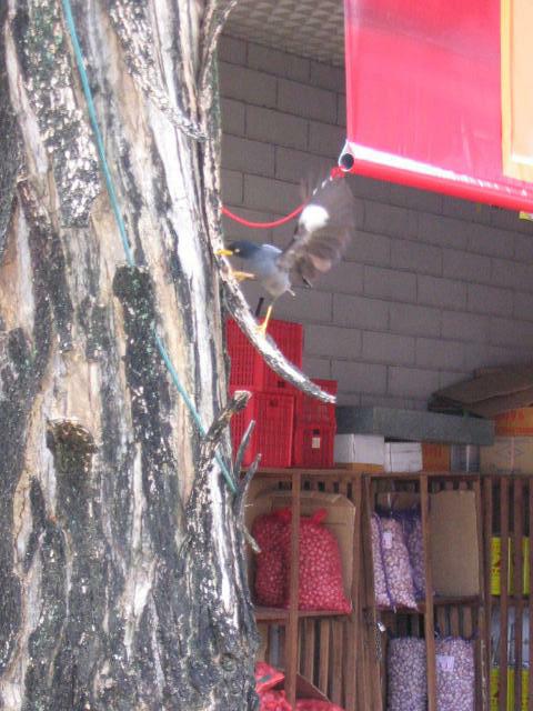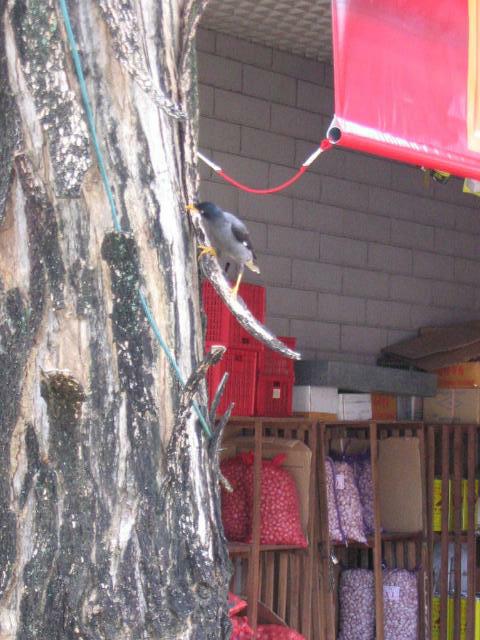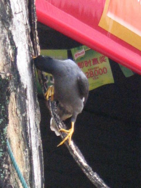 街中でみかけたカラス。黄色いくちばしでいっしょうけんめい木の間をほじっているのがかわいかった。
