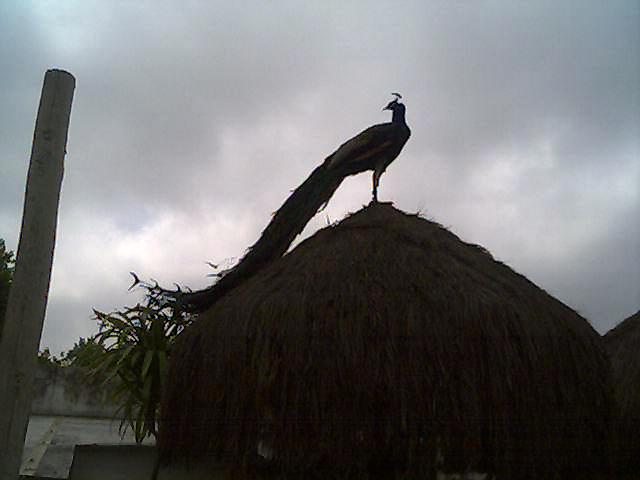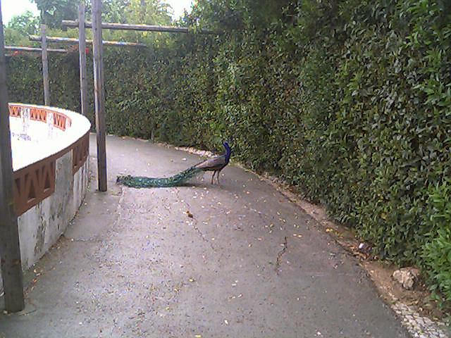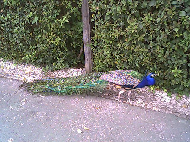 野良クジャク。おっかけてみたら、にげまどっていました。