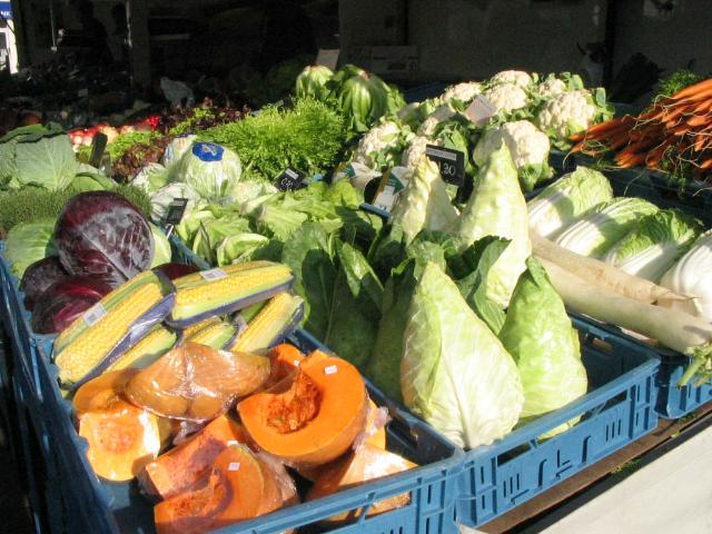 昨日は駐車場だったところに、朝市が開いていた。八百屋、肉屋、ケーキ屋、パン屋、花屋など一通りのものが売っている。どこもトレーラーかトラックを利用して売り場にしている。日本みたいに屋台を組む店はない。珍しげなものをパチリ。