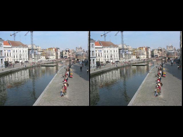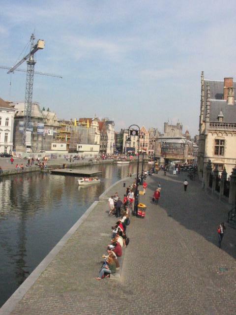 「レイエ川にかかる橋。そこから眺める鐘楼、聖バーフ大聖堂、聖ニコラス教会はこの町を代表する風景です。また、河岸のグラスレイGrasleiとコレンレイKorenleiに並ぶ古いファサードも見事です。」(http://www.belgium-travel.jp/destination/sites/flanders/gent.htmより引用)