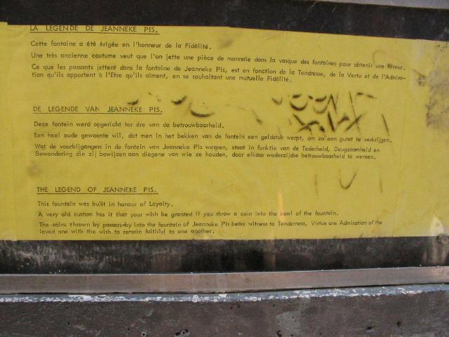 「17世紀にJ. デュケノワによって作られた可愛らしい彫像。マヌカン・ピスとかプチ・ジュリアンと呼ばれているブリュッセルの最年長市民です。今までに2度盗難に遭っています。 」(http://www.belgium-travel.jp/destination/sites/brussels/brussels_1.htmから引用)