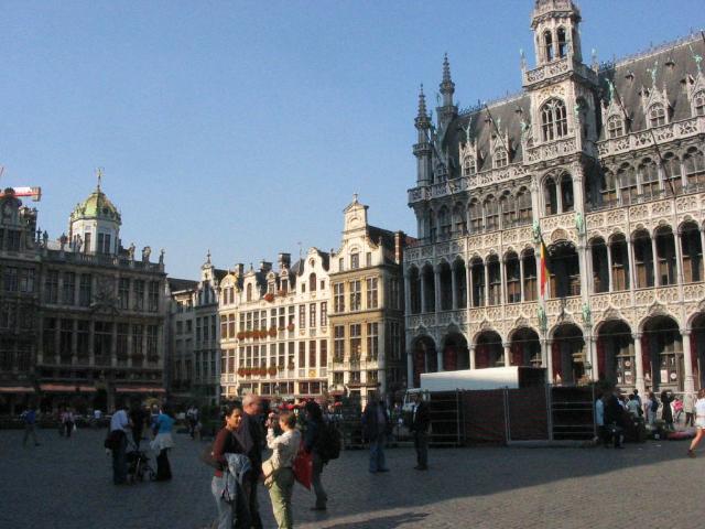 「市の中心となる広場で、中世には馬上槍試合も行われました。1695年、ルイ14世率いるフランス軍の砲撃に遭い、広場を取り囲む建物のほぼ全てが破壊されましたが、5年後にはもとの姿を取り戻しました。現在は毎日花市が立つほか、さまざまなイベントの会場として利用され、いつも人々で賑わっています。かつてヴィクトル・ユゴーは「素晴らしく大きい広場」と呼び、ジャン・コクトーは「絢爛たる劇場」とたたえました。市庁舎を中心にギルドハウスが立ち並ぶ眺めは圧巻です。 」(http://www.belgium-travel.jp/destination/sites/brussels/brussels_1.htmより引用)