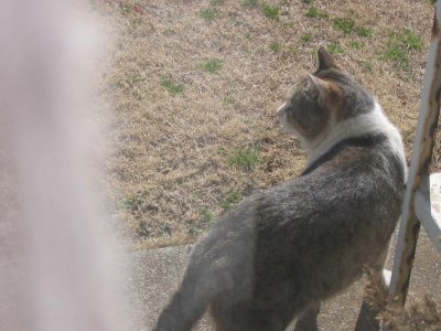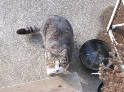 2006年2月に入って、なついてきた。手を出すとスリスリしてくる。家の中にもこっそり侵入して、あぶに追い払われている。