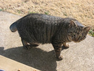 とら。♀。来はじめたばかりだが、窓をあけても逃げないところを見ると、こいつも純粋の野良ではないだろう。