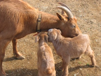 山羊のエサを持って入ると、いっぱい山羊がよってきました。