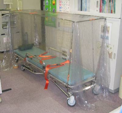 ● 飛沫感染患者搬送用簡易アイソレーター バージョン1 ● 簡易アイソレーター バージョン4 ジョイントを追加することで、小型化することができたが、 一方で著しく工作時間を要した。現在の溶接機では、3mm平板の 溶接は熱量不足ぎみ。 折り畳むとこのようになる。 広げるとこうなる。 ● 診察時飛沫感染防止用スクリーン