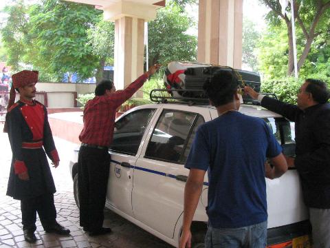 一番左が、ホテルのポーター。次いで、ドライバー、ラージ、別のポーター。