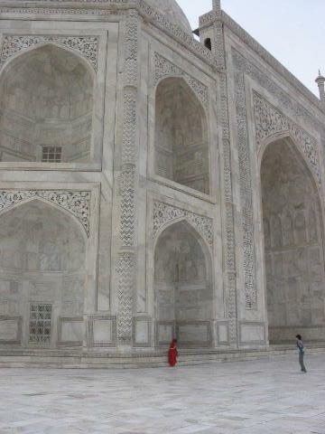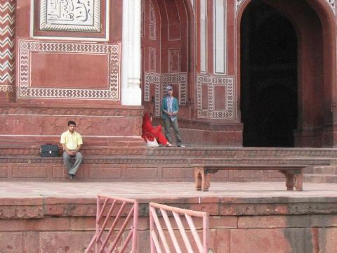 文化歴史的施設に対する爆弾テロが多発しているそうで、タージマハルに入るときのセキュリティーチェックは非常に厳しかった。そのため荷物はラージに預けて手ぶらで入場。全部預けたつもりだったのだが単4電池の懐中電灯でひっかかってやり直しだった。空港でのセキュリティーより厳しい。ってことは、タージマハルは空港より重要?