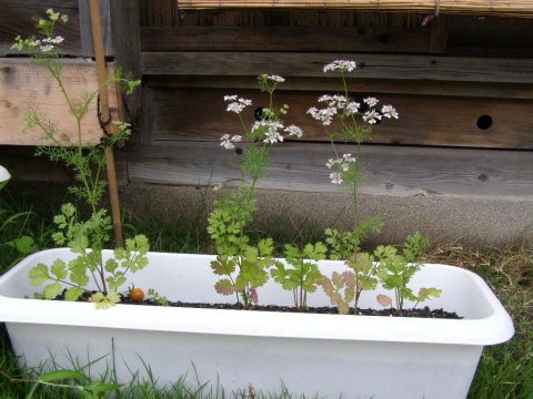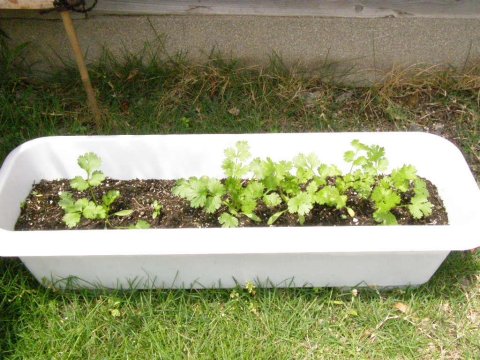 パクチーの種をまいといたら、自然に生えてきた野良パクチー。