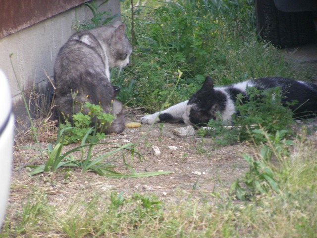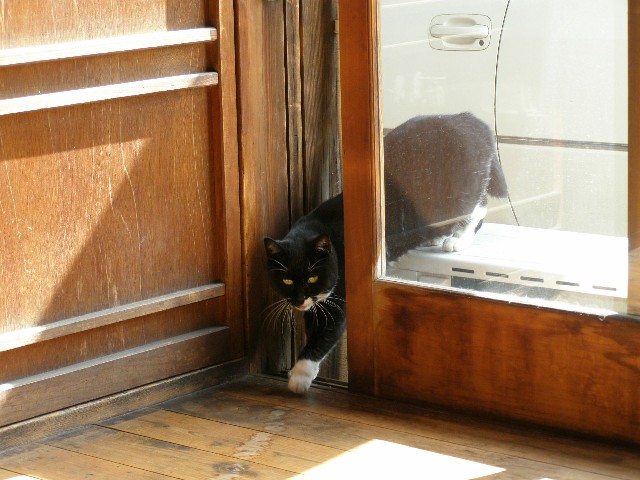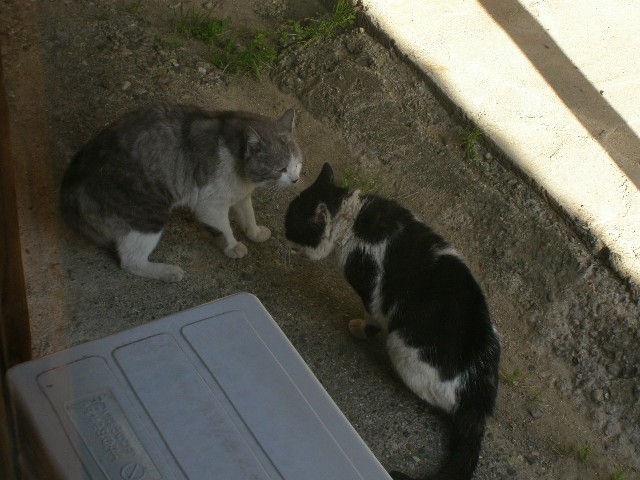 ↓ ちなみにこっちが元祖ぶっちー。新参猫とケンカ中、というか、新参猫が貫禄負け。