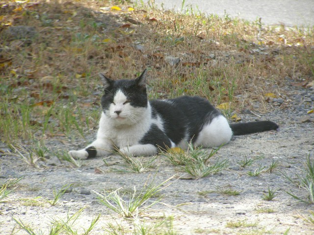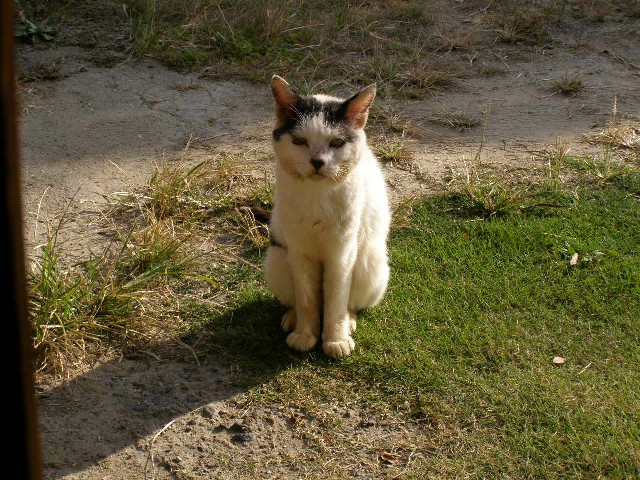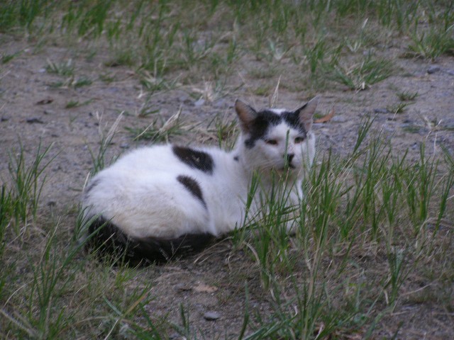 こちらは白ぶっちー。かなりの老猫。じーっと座ってほとんど動きません。毎日同じ芝の上にいるので