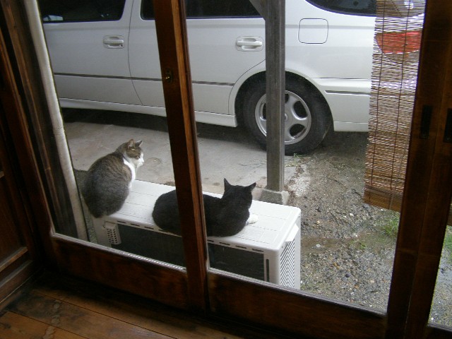 寒くなってきたら、室外機の上でちびちゃんとソックスが仲良く日向ぼっこ。ソックスが♀で、