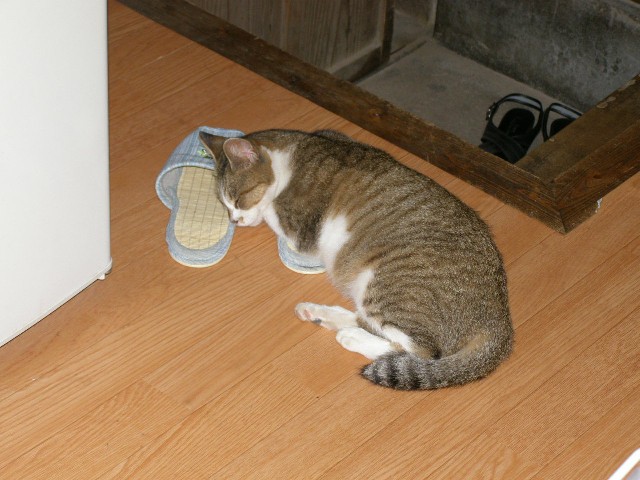 とても人なつこい、エルザ。ぐりぐりさせてくれます。今日は勝手口から上がりこんで、スリッパの上で爆睡中。