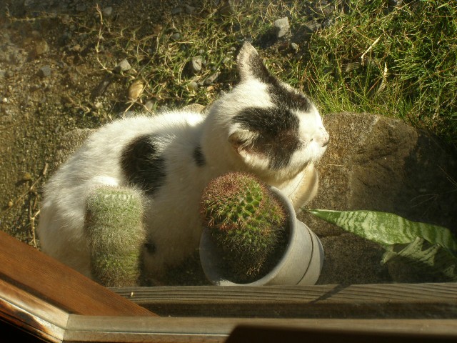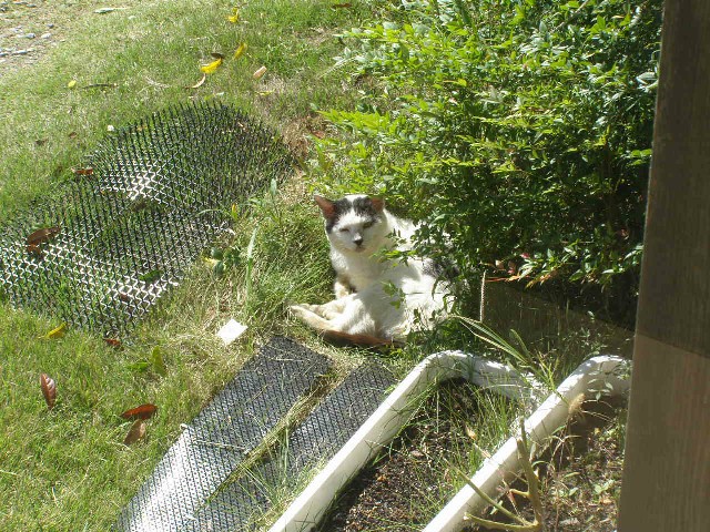 下の芝が枯れたほど、じーっとしてます。夜帰ってくると出迎えてくれるのはうれしかったりする。